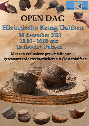 De Open Dag van de Historische Kring Dalfsen wordt gehouden op zaterdag 30 december van 10.00 tot 16.00 uur in het Historisch Centrum Ab Goutbeek in de Trefkoele+. Naast de werkgroep archeologie presenteren verschillende werkgroepen die dag diverse projecten waaraan op dit moment wordt gewerkt. Denk daarbij aan bijvoorbeeld de werkgroepen boerderij- en veldnamen, Dalfser dialect, foto- en beeldmateriaal en genealogie.